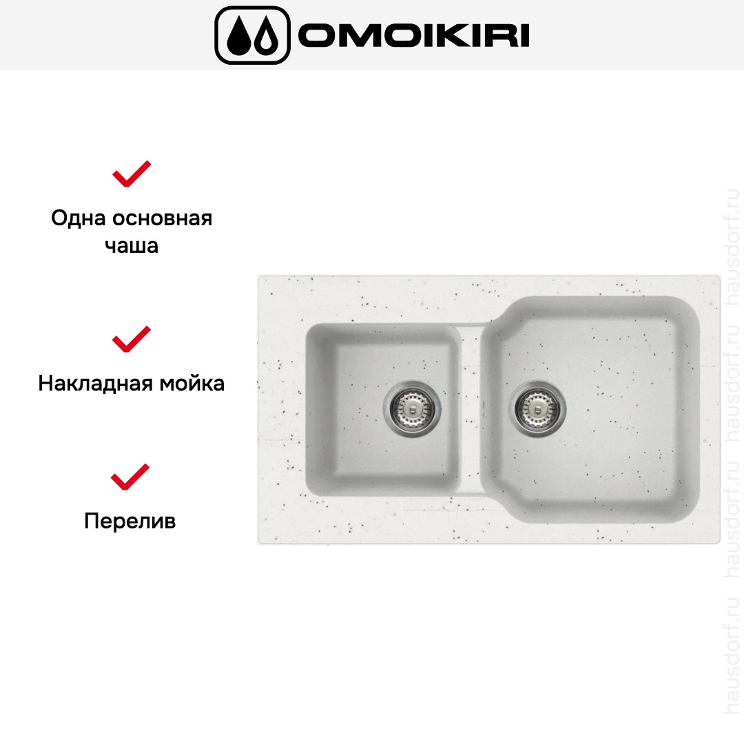 Накладная мойка Omoikiri — отличный выбор для тех, кто хочет создать гармоничное пространство с удобной сантехникой. простой в установке. Преимущество такой конструкции: легко подобрать практически к любой кухне и не придется демонтировать вместе с тумбой при ремонте или перестановке остальной мебели. Данная модель имеет стандартную форму, поэтому подходит большинству пользователей. Устанавливается над столешницей: это самый простой способ монтажа, зачастую с ним можно справиться даже без специалистов, главное — правильно рассчитать размеры ниши.