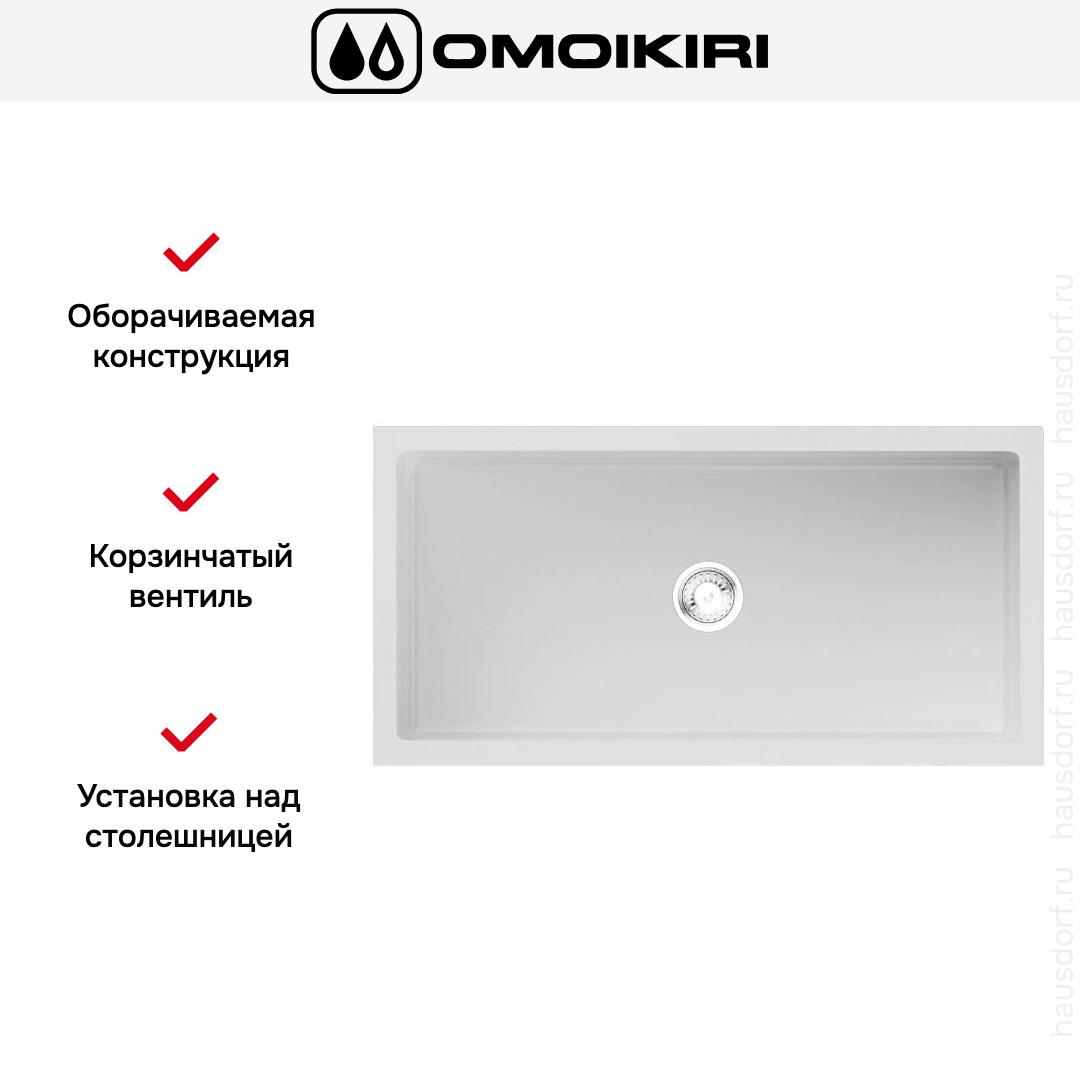 Мойка Omoikiri Mikura 91 WH Glossy — модульная прямоугольная мойка для современных кухонь с глянцевым белым оформлением и продуманной эргономикой. Она сочетает лаконичный внешний вид и практичность, подходя для как классических, так и минималистичных интерьеров.
