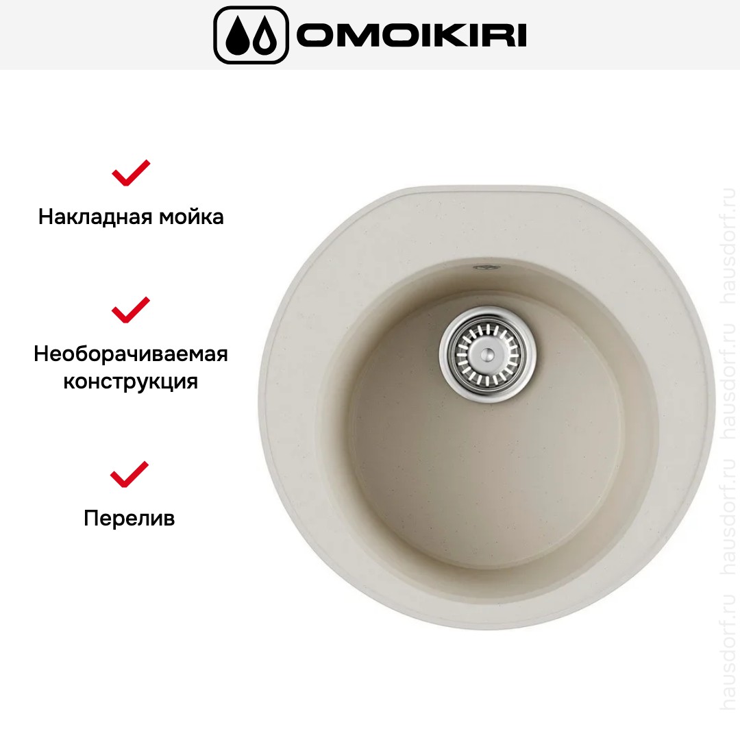 Мойка OMOIKIRI MIYA 50R-EV — стильное и практичное решение для компактной кухни. Ее округлая форма смягчает интерьер и визуально увеличивает рабочую зону, а цвет «Эверест» добавляет свежести и легкости любой столешнице.