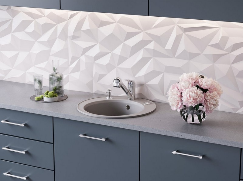 вровень со столешницей — создается ощущение бесшовного пространства, а если мойка сделана из того же материала, то и единого дизайна;