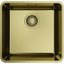 Дизайн сочетает светлое золотое PVD-покрытие и матовую нержавеющую сталь, что придаёт кухне элегантность и делает поверхность более стойкой к истиранию. Цельнотянутая конструкция исключает сварные швы, повышая гигиеничность и упрощая уборку. Скруглённые углы радиусом 2,5 см облегчают удаление грязи и исключают накопление остатков в труднодоступных местах.