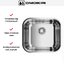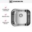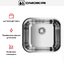 Выходит компактная и строгая модель, которая выглядит как аккуратный металлический квадрат с ровными боками и мягкими скруглениями радиусом 8 см. Поверхность сохранена в естественном оттенке нержавеющей стали, что придаёт кухонному модулю промышленную сдержанность и лёгкость в сочетании с остальными элементами. Конструкция не переворачиваемая, поэтому ориентация чаши фиксирована и предсказуема при монтаже.