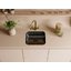 Корпус выполнен из нержавеющей стали с PVD-покрытием, что придаёт поверхности устойчивость к механическим воздействиям и выразительный металлический оттенок. Технология цельнотянутого формообразования обеспечивает отсутствие сварных швов и внутренних стыков. Это повышает гигиеничность и облегчает уход, так как грязь не скапливается в швах. Лёгкий вес изделия делает монтаж проще, а звукопоглощающие элементы снижают уровень шума при использовании.