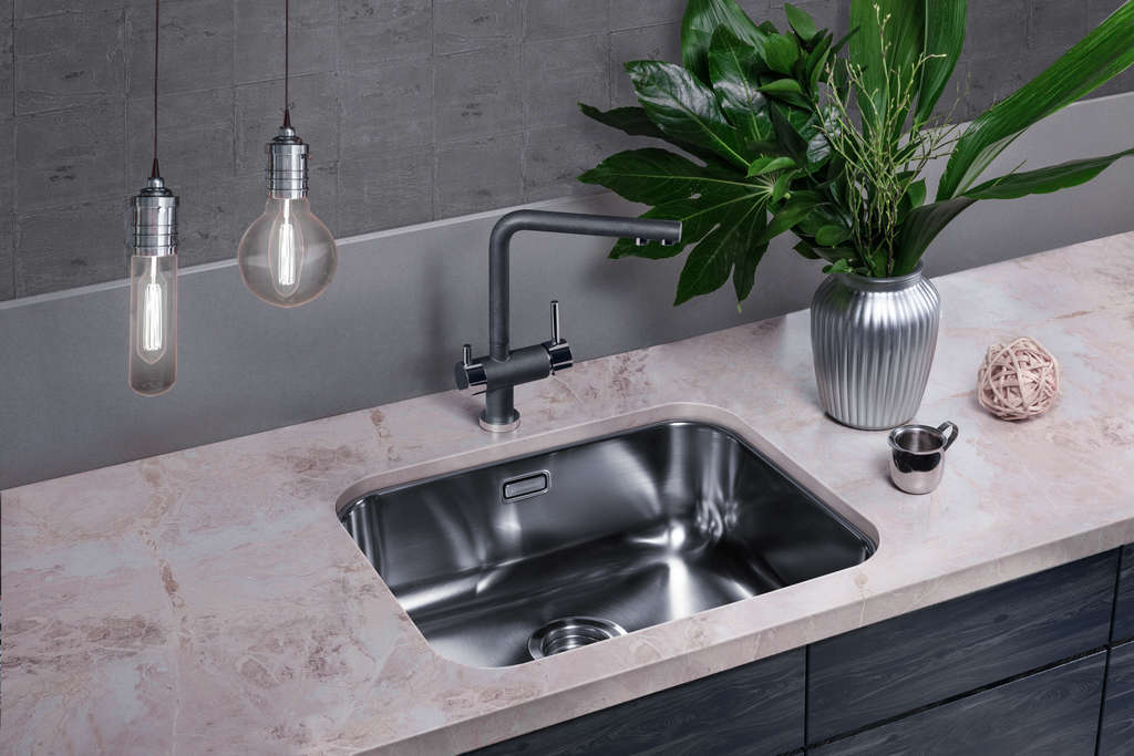 Установка под столешницу заключается в том, что мойку устанавливают таким образом, чтобы бортики не были видны на поверхности, а уровень бортиков находился ниже уровня столешницы.