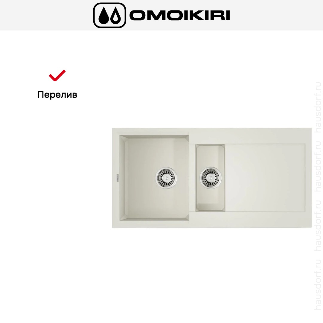 Обратите внимание на дизайнерские отличия мойки Омойкири, которые помогут в создании идеальной кухни в вашем доме. Она выполнена в цвете белый. Крыло, расположенное является дополнительным рабочим пространством, на котором можно сушить посуду, разделывать мясо и нарезать овощи.