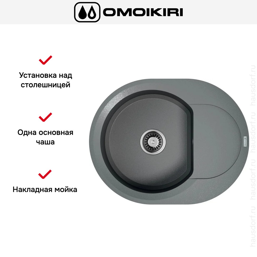 Мойка Omoikiri Sakaime 60E GR выполнена в элегантном сером оттенке «Серый Ленинград» и привлекает внимание плавными овальными формами. Ее габариты 60×47 см и аккуратное крыло делают модель сбалансированной по пропорциям. Классическая овальная чаша смягчает острые линии кухни и визуально расширяет рабочее пространство. Цвет тонко нейтрален и легко сочетается с деревом, металлом и матовыми фасадами.
