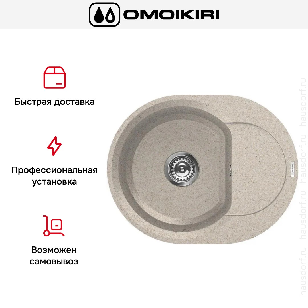 Накладная мойка Omoikiri — отличный выбор для тех, кто хочет создать гармоничное пространство с удобной сантехникой. простой в установке. Преимущество такой конструкции: легко подобрать практически к любой кухне и не придется демонтировать вместе с тумбой при ремонте или перестановке остальной мебели. Данная модель имеет скругленный контур, поэтому выбор тумбочки для нее потребует дополнительного внимания. Устанавливается над столешницей: это самый простой способ монтажа, зачастую с ним можно справиться даже без специалистов, главное — правильно рассчитать размеры ниши.