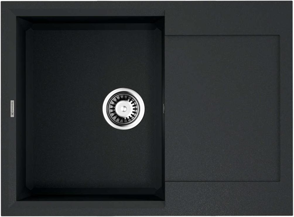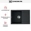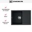 Материал — TetoGranit. Толщина стенок 10 мм придает конструкции внушительную основу, а значит, мойка уверенно держит форму и сохраняет стабильность при ежедневной эксплуатации. Поверхность черного цвета органично сочетается как с темными, так и со светлыми фасадами — легко добиться продуманного визуального акцента на рабочей зоне.