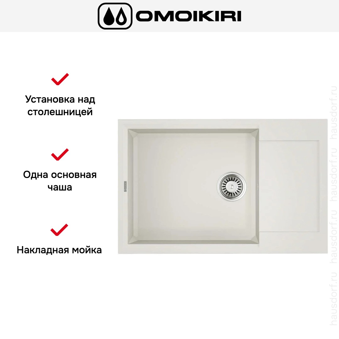 Обратите внимание на дизайнерские отличия мойки Омойкири, которые помогут в создании идеальной кухни в вашем доме. Она выполнена в цвете белый. Крыло, расположенное является дополнительным рабочим пространством, на котором можно сушить посуду, разделывать мясо и нарезать овощи.