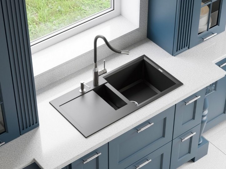 вровень со столешницей — создается ощущение бесшовного пространства, а если мойка сделана из того же материала, то и единого дизайна;