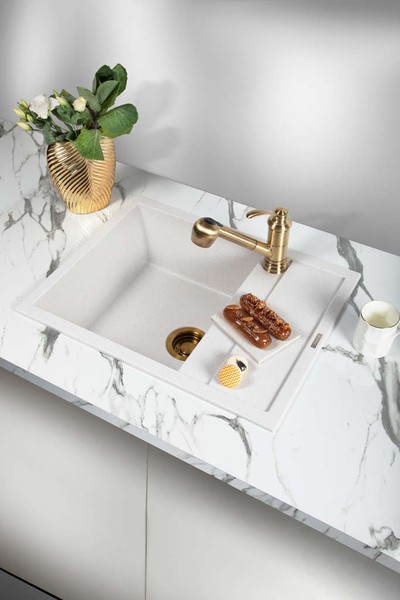 Практические преимущества проявятся в повседневных сценариях: быстрое очищение овощей на крыльце, удобное мытьё крупногабаритной посуды в глубокой чаше и минимальное шумовое сопровождение при сливе благодаря массе и структуре материала. Белый оттенок легко сочетается с металлом, деревом и яркими фасадами, поэтому раковина будет органична и в скандинавском, и в лофтовом интерьере. Вы получите надёжное и эстетичное решение, которое экономит время при эксплуатации и упрощает уход.