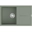 Прямоугольная накладная мойка серо-зеленого цвета выглядит сдержанно и небанально: широкая панель 79×50 см с интегрированным крылом формирует единое рабочее поле над столешницей. Линии ровные, пропорции выверены, за счет чего модель легко вписывается в кухонный гарнитур.