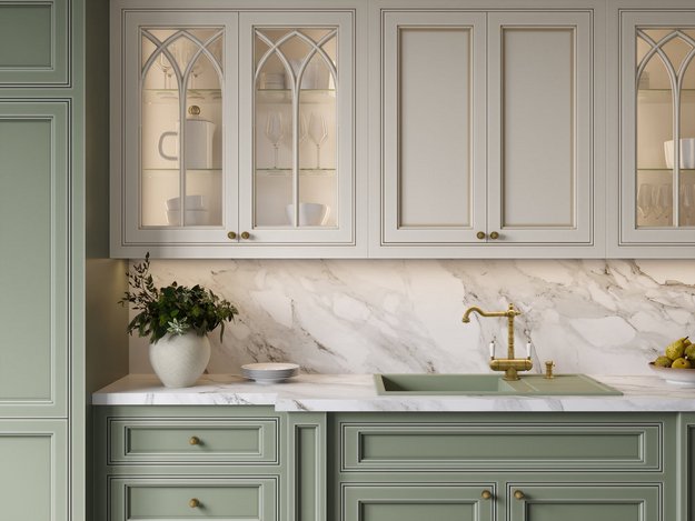 вровень со столешницей — создается ощущение бесшовного пространства, а если мойка сделана из того же материала, то и единого дизайна;