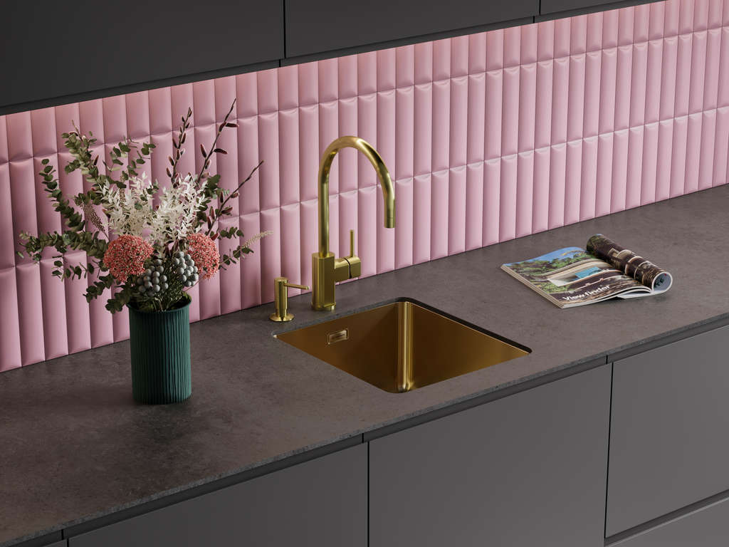 Латунная отделка сочетается с интерьером в теплой гамме и позволяет подобрать соответствующую фурнитуру в том же тоне. Это отличный выбор для компактных кухонь, мини-постирочных или как дополнительная рабочая зона в большой кухне. Для ухода достаточно мягкой губки и неабразивных средств, чтобы сохранить цвет и текстуру. В комплекте также поставляется сифон, что ускоряет запуск в эксплуатацию и снижает сложности при подключении.
