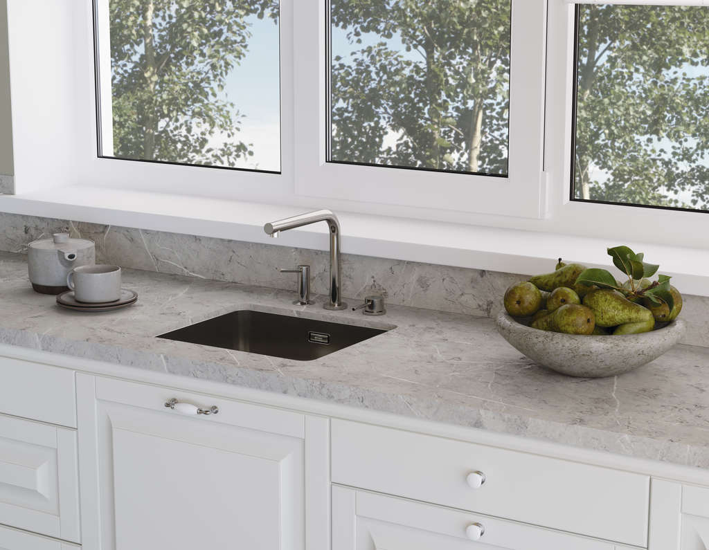 вровень со столешницей — создается ощущение бесшовного пространства, а если мойка сделана из того же материала, то и единого дизайна;