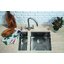 Компактная врезная модель размером 44×44 см сочетает строгие геометрические линии и современную отделку в цвете «вороненая сталь». Квадратная форма с радиусом скругления 1 см придаёт аккуратный, минималистичный облик и позволяет гармонично вписаться в кухонный гарнитур. PVD‑покрытие обеспечивает глубокий, стойкий оттенок и повышенную устойчивость к истиранию, сохраняя эстетический вид даже при интенсивной эксплуатации. Ручная сборка даёт преимущество в деталях обработки и внимании к стыкам, что видно при подключении и монтаже.