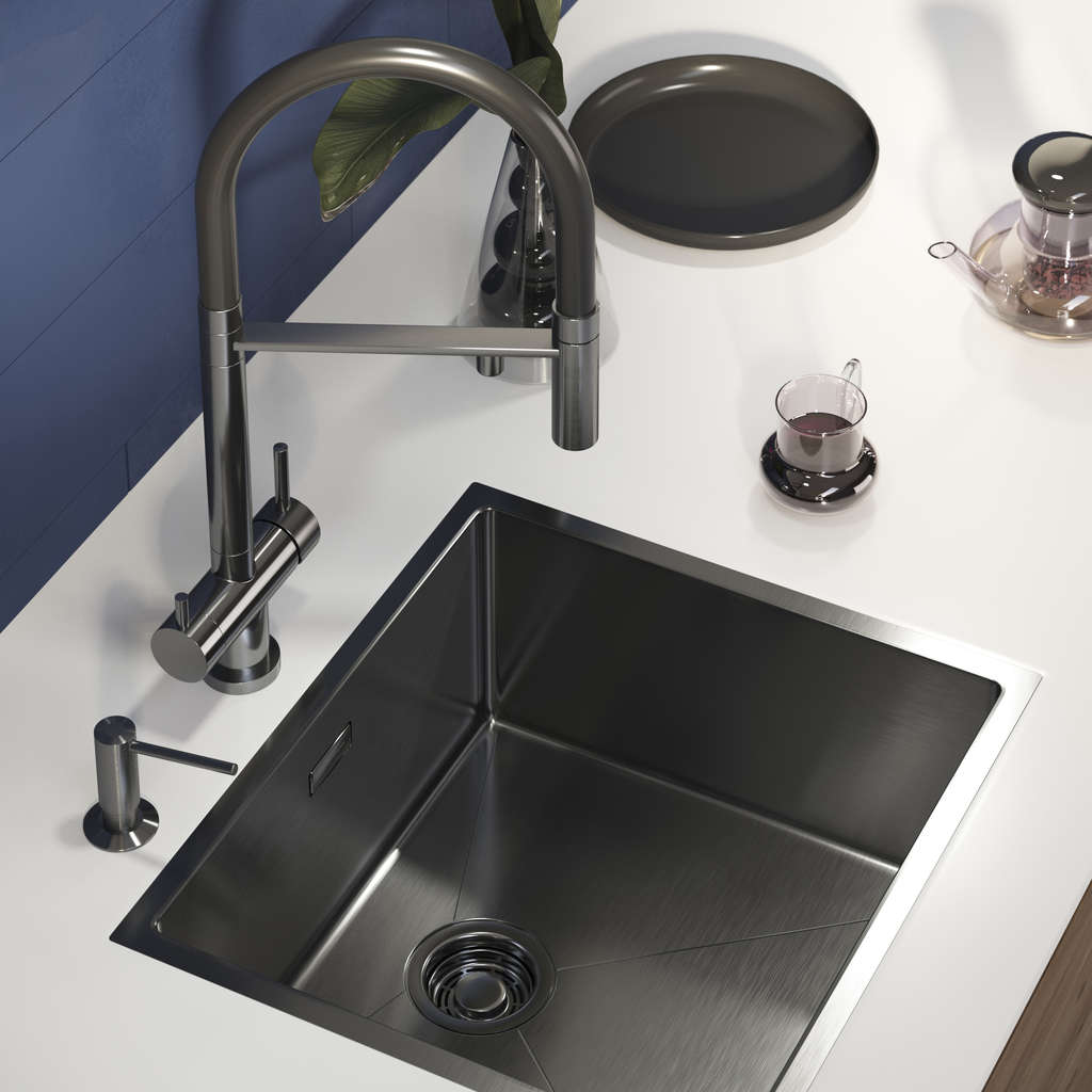 Обратите внимание на дизайнерские отличия мойки Омойкири, которые помогут в создании идеальной кухни в вашем доме. Она выполнена в цвете графит. Основной материал — нержавеющая сталь, он гарантирует надежность и долгие годы службы без повреждений.