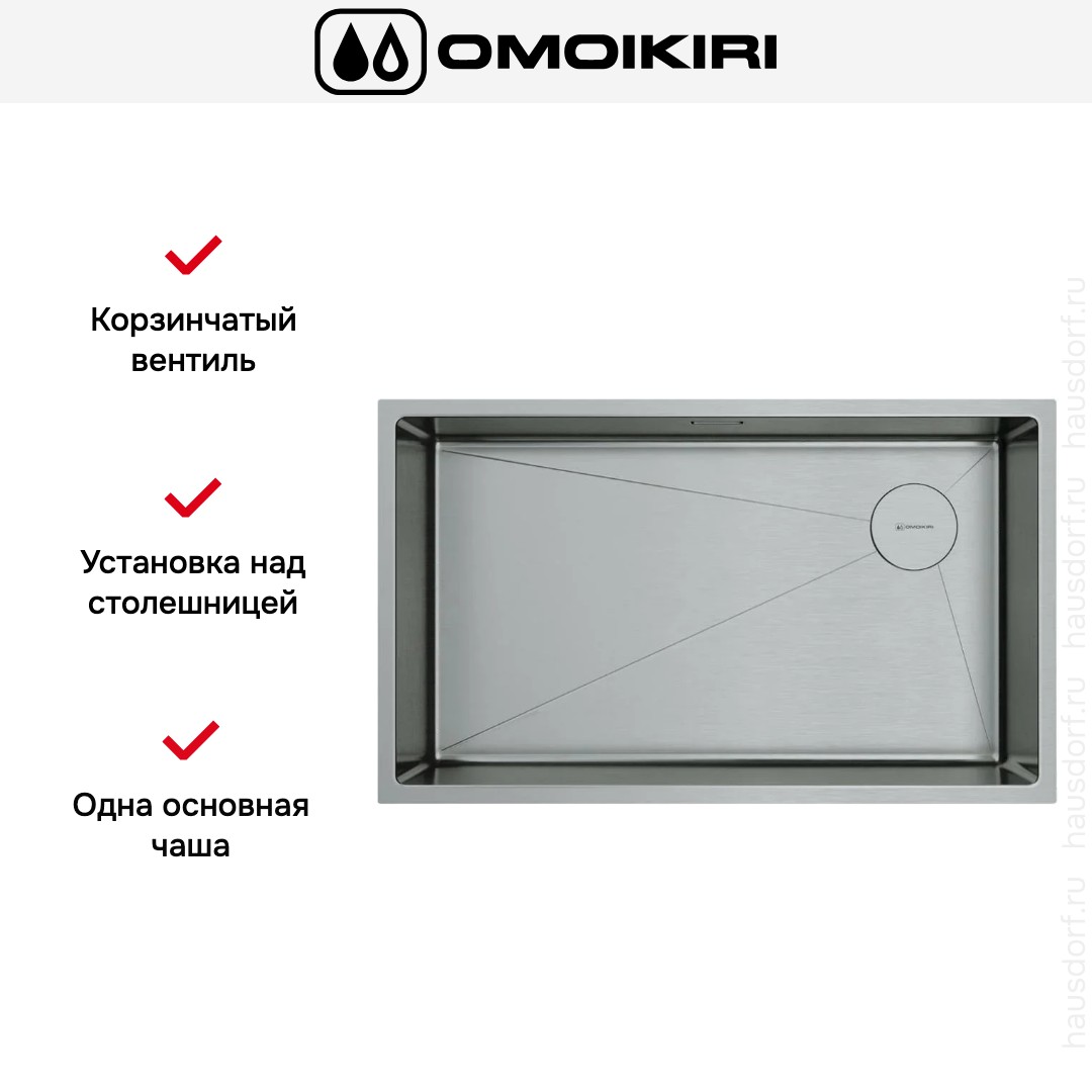 Врезная мойка Omoikiri — отличный выбор для тех, кто хочет создать гармоничное кухонное пространство с полностью вписывающейся в него сантехникой. Преимущество такой конструкции — плотное прилегание к столешнице, так как вырез подбирается индивидуально под габариты модели. Под стыки не попадает вода, поэтому срок службы значительно увеличивается, пользоваться ей удобно и приятно. Данная модель имеет стандартную форму, поэтому подходит большинству пользователей. Устанавливается вровень со столешницей, благодаря чему не остается стыков, в которых копились бы загрязнения. Устанавливается под столешницу, благодаря чему не остается стыков, в которых копились бы загрязнения, а также увеличивается рабочая глубина. Устанавливается над столешницей: это самый простой способ монтажа, зачастую с ним можно справиться даже без специалистов, главное — правильно рассчитать размеры ниши.