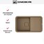 Материал — фирменный ArtGranit. Изделие выполнено методом литья, что обеспечивает цельную структуру без стыков. Толщина 10 мм при массе 14.4 кг дает ощущение монолита и уверенную устойчивость на тумбе. Густой карамельный оттенок напоминает природный цвета, удачно сочетается с деревянными фасадами и столешницами.