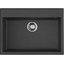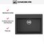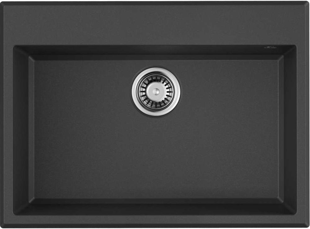Минималистичная прямоугольная раковина черного цвета: пропорции 68×50 см задают четкую геометрию, которая легко вписывается в разные кухонные планы. Установка над столешницей делает контур заметным и визуально выделяет рабочую зону, создавая заметную границу между мойкой и поверхностью. Бортик защищает от брызг, а в задней части, где он более широк, служит в качестве полки ля размещения моющих средств.