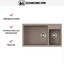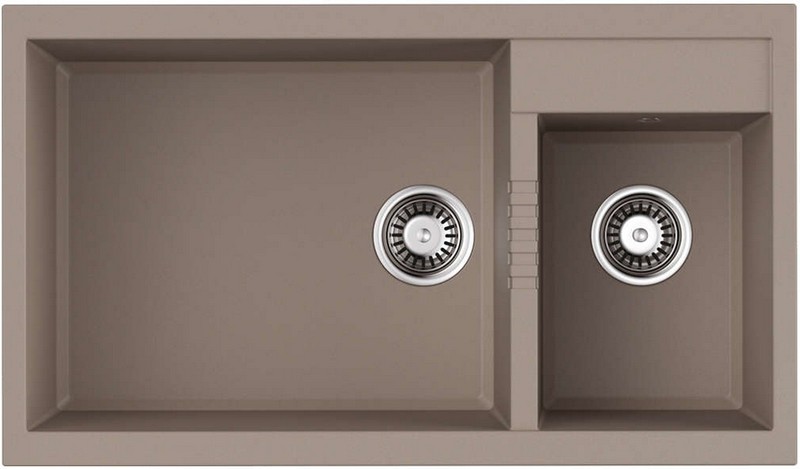 Модель выглядит компактно несмотря на значительную ширину: прямоугольный контур при размерах 86×50 см, материал теплого бежевого цвета, с четкими линиями и продуманной геометрией чаш. Литая панель формирует цельный образ без лишних деталей, а спокойный оттенок легко сочетается с большинством кухонных фасадов, особенно из натуральных материалов.