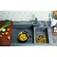 Это накладной вариант, установка выполняется над столешницей. Для корректного монтажа требуется база шириной 90 см. Монтажное отверстие — 84×48 см, так что подготовить посадочное место несложно даже на плотной столешнице. Конструкция не оборачиваемая: ориентация фиксирована и сохраняется при установке. В комплекте предусмотрены крепления, что упрощает посадку на место. Рабочая зона разделена на две части. Основная чаша рассчитана на повседневные задачи: ее габариты 52.5×42.5 см обеспечивают удобство при мытье посуды и обработке крупной утвари. Глубина по вертикали — 22 см, что помогает уменьшить разбрызгивание и свободно размещать большие кастрюли. Дополнительная чаша 25×34.5 см с глубиной 19 см — удобное место для ополаскивания, разморозки или сортировки продуктов, когда основной сектор занят.