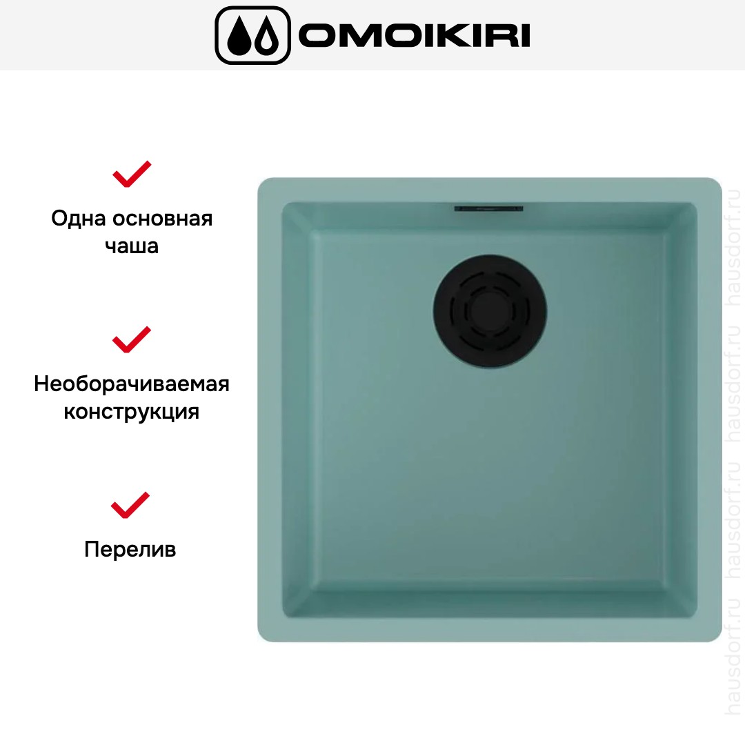 Мойка OMOIKIRI Yamakawa 45 Integra AZ выполнена в квадратном формате и выделяется строгой геометрией и матовым лазурным оттенком, который придаёт кухонной поверхности свежий акцент. Врезной метод установки подразумевает монтаж вровень со столешницей, что создает визуально цельную поверхность и облегчает уборку. Минималистичный профиль и тонкие кромки подчёркивают современную эстетику, а матовая фактура смягчает отражения света и делает следы от воды менее заметными.