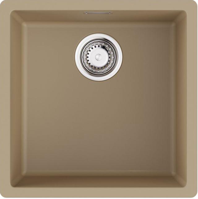 Выходит компактная и сдержанная раковина квадратной формы, выполненная в цвете шампань. При габаритах 45.6×45.6 см она обладает чёткими геометрическими линиями и небольшой площадью внешнего обрамления, что делает её гармоничной в ограниченных кухонных проёмах. Конструкция не подлежит перевороту, поэтому ориентация чаши фиксирована — это учитывают при проектировании рабочей зоны и расположении смесителя.