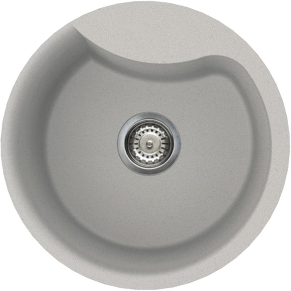 Материал — TetoGranit. Поверхности из этого материала смотрятся цельно и аккуратно, белый тон выглядит ровно и не спорит с остальными элементами кухни. Такое исполнение легко поддерживать в одном стиле со смесителем и аксессуарами, а однородный цвет органично подчеркивает круглую форму чаши. Вес составляет 5.4 кг, что стоит учитывать при транспортировке и работе мастерa. Белый цвет визуально освежает зону мойки и помогает создать порядок на рабочей поверхности. Такой подход хорошо работает как в минималистичных кухнях, так и в более уютных интерьерах с теплыми тонами.