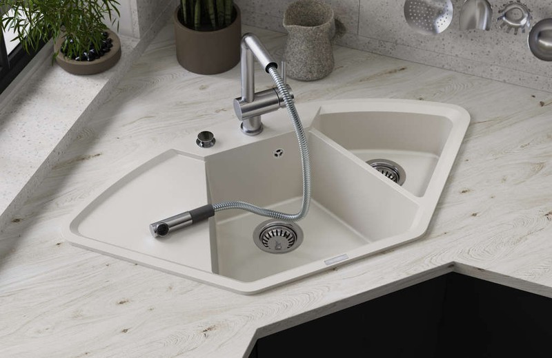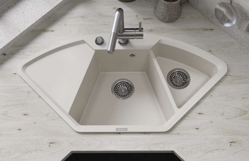 Круглые и овальные мойки смотрятся эффектно и стильно, у них отсутствуют углы, так что уход не составляет труда. При одинаковом объеме круглая мойка будет казаться меньше, чем квадратная. Такие модели часто используют в классическом интерьере. Установка такой мойки требует круглого отверстия в столешнице, что также достаточно просто сделать. Угловые мойки позволяют заполнить пространство в углах, экономя место в помещении. Раковины в них могут быть различной формы, а место за мойкой можно использовать для хранения. Мойки в форме трапеции выглядят свежо и оригинально, но подойдут не для всякого интерьера.