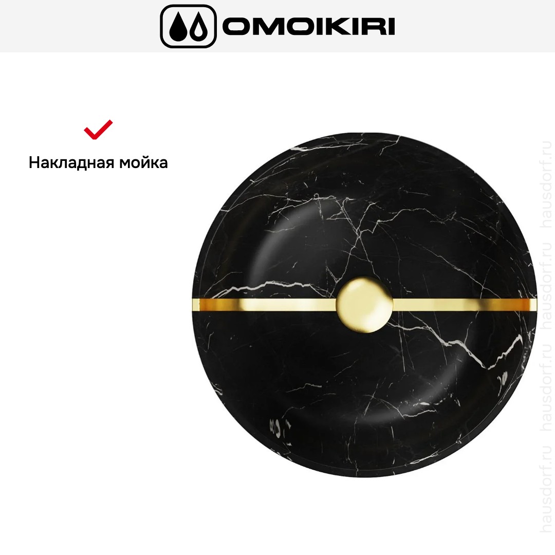 Мойка OMOIKIRI Hitomi BL Marble представлена в виде накладной круглой модели чёрного цвета, которая привлекает взгляд минималистичным силуэтом. Дизайн выдержан в современном стиле и легко вписывается в разные интерьеры. Круглая форма и компактные размеры подчёркивают аккуратность и простоту управления пространством. Матовый оттенок с лёгким рисунком придаёт глубину цвету и визуально скрывает следы воды.