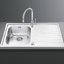 Накладная мойка Smeg — отличный выбор для тех, кто хочет создать гармоничное пространство с удобной сантехникой. простой в установке. Преимущество такой конструкции: легко подобрать практически к любой кухне и не придется демонтировать вместе с тумбой при ремонте или перестановке остальной мебели. Данная модель имеет стандартную форму, поэтому подходит большинству пользователей. Устанавливается над столешницей: это самый простой способ монтажа, зачастую с ним можно справиться даже без специалистов, главное — правильно рассчитать размеры ниши.