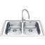 Стальная мойка с двумя эргономичными чашами. Необорачиваемая модель выполнена из нержавеющей стали с микродекором. Прямоугольная мойка шириной 86 см дополнена сифоном с возможностью подключения посудомоечной или стиральной машины и корзинчатым вентилем. Глубина обеих чаш по вертикали составляет 21 см, что позволяет использовать высокие смесители.