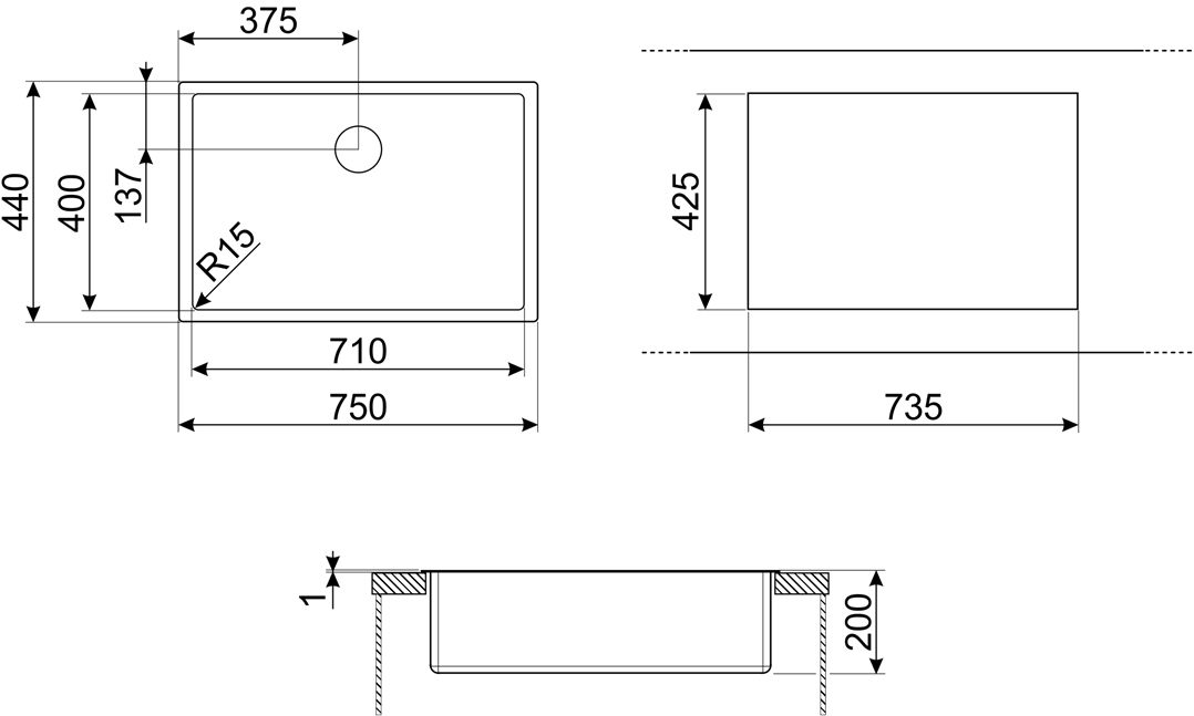 Установка под столешницу заключается в том, что мойку устанавливают таким образом, чтобы бортики не были видны на поверхности, а уровень бортиков находился ниже уровня столешницы.