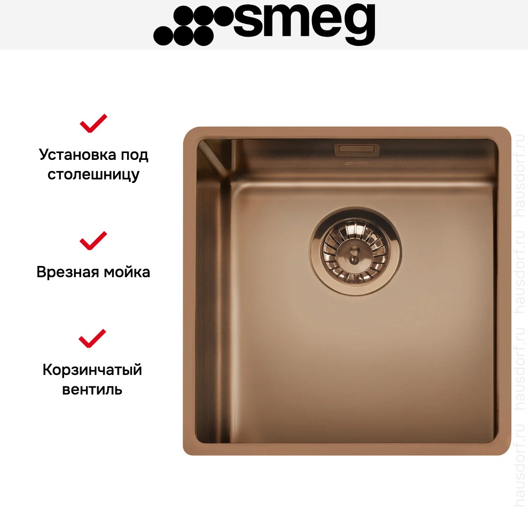 Мойка Smeg VSTR40CUX — изысканная врезная модель квадратной формы, сочетающая в себе функциональность, компактность и выразительный дизайн. Её габариты — 44×44 см — обеспечивают сбалансированное внутреннее пространство, в котором глубина чаши равна ширине, что создаёт оптимальные условия для выполнения повседневных задач: от мытья посуды до подготовки ингредиентов. Такая геометрия эффективно снижает разбрызгивание воды и придаёт изделию визуальную гармонию.