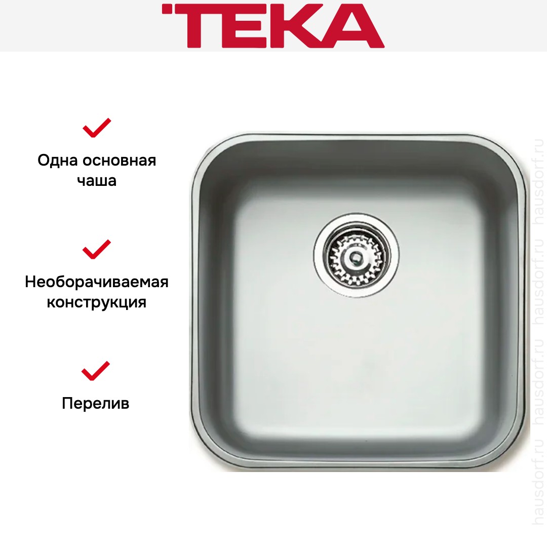 Мойка Teka BE 40.40.20 Plus — изящная врезная модель квадратной формы, созданная для тех, кто ценит компактность и аккуратный внешний вид. Полированная нержавеющая сталь придаёт изделию благородный блеск и обеспечивает гармонию с самой разной кухонной техникой. Габариты 43,54×43,54 см позволяют вписать её в небольшие гарнитуры без ущерба для эстетики. Подстольный способ установки скрывает край мойки и создаёт гладкую линию столешницы.