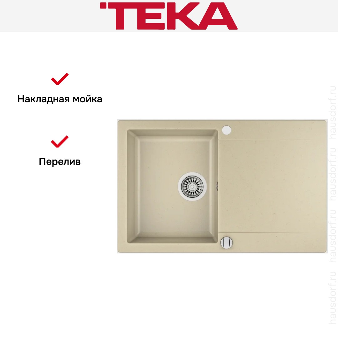 Накладная мойка Teka — отличный выбор для тех, кто хочет создать гармоничное пространство с удобной сантехникой. простой в установке. Преимущество такой конструкции: легко подобрать практически к любой кухне и не придется демонтировать вместе с тумбой при ремонте или перестановке остальной мебели. Данная модель имеет стандартную форму, поэтому подходит большинству пользователей. Устанавливается над столешницей: это самый простой способ монтажа, зачастую с ним можно справиться даже без специалистов, главное — правильно рассчитать размеры ниши.