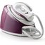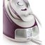 Выглядит как компактный парогенератор фиолетового цвета с чёткими геометрическими линиями: высота 26.8 см, ширина 22.6 см и глубина 39.6 см формируют плотный, но не громоздкий профиль. При общем весе 3.6 кг прибор остаётся достаточно мобильным для перемещения по дому. На корпусе заметна подставка для утюга и удобная ручка бака, что подчёркивает продуманность формы и удобство использования в быту.