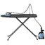 Профессиональный утюг подсоединен к емкости с водой, расположенной в корпусе с подставкой. Вы можете использовать такой утюг как на горизонтальной доске для глажки, так и при обработке вещей на вешалке.
