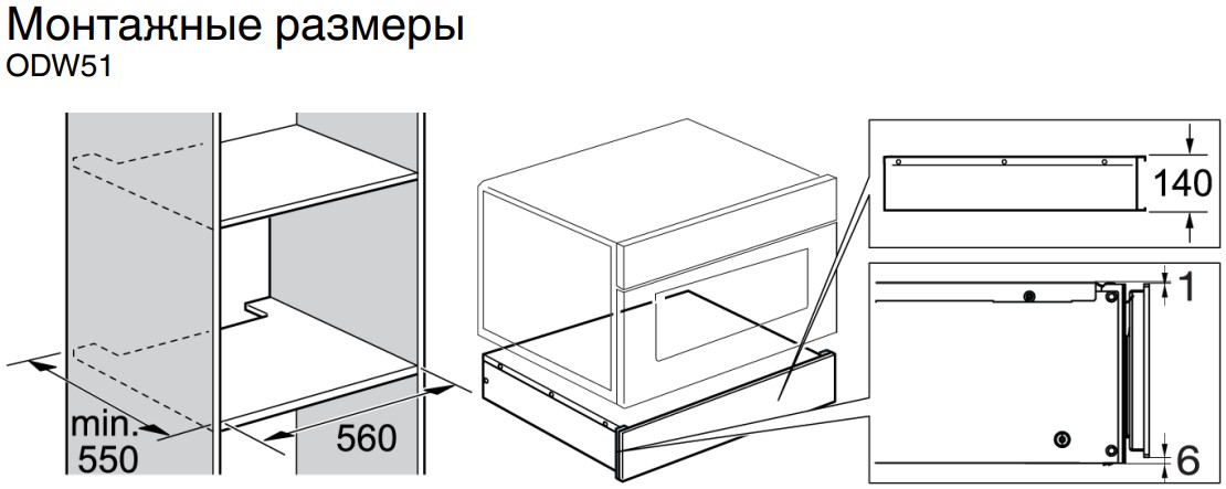 Подогреватели посуды, в отличие от многих других бытовых приборов, выпускаются преимущественно во встраиваемом варианте: модели соло распространены гораздо меньше. Встраиваемые модели имеют свои особенности — прежде всего это место установки. Чаще всего подогреватели устанавливаются в колонну под кофемашинами, чтобы можно было сразу воспользоваться извлеченной из камеры подогретой чашкой. Их могут устанавливать также под компактными духовыми шкафами: блюдо сразу помещают на подогретую тарелку. Благодаря фасаду без ручки и бесшовному дизайну прибор воспринимается как часть колонны.
