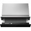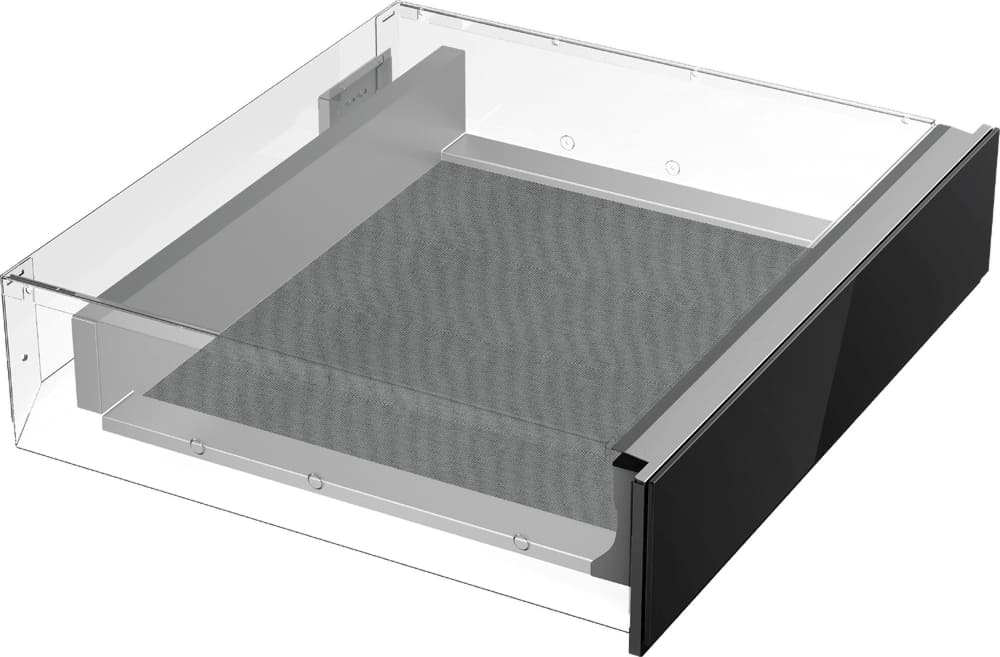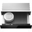 Подогреватель открывается нажатием на фронтальную панель — ящик выезжает на несколько сантиметров, полностью открыть камеру можно, потянув его до упора. Такой способ распространен в современной технике, благодаря этому вы можете собрать комплект из кухонных приборов без выпирающих ручек и создать «бесшовный» интерьер.