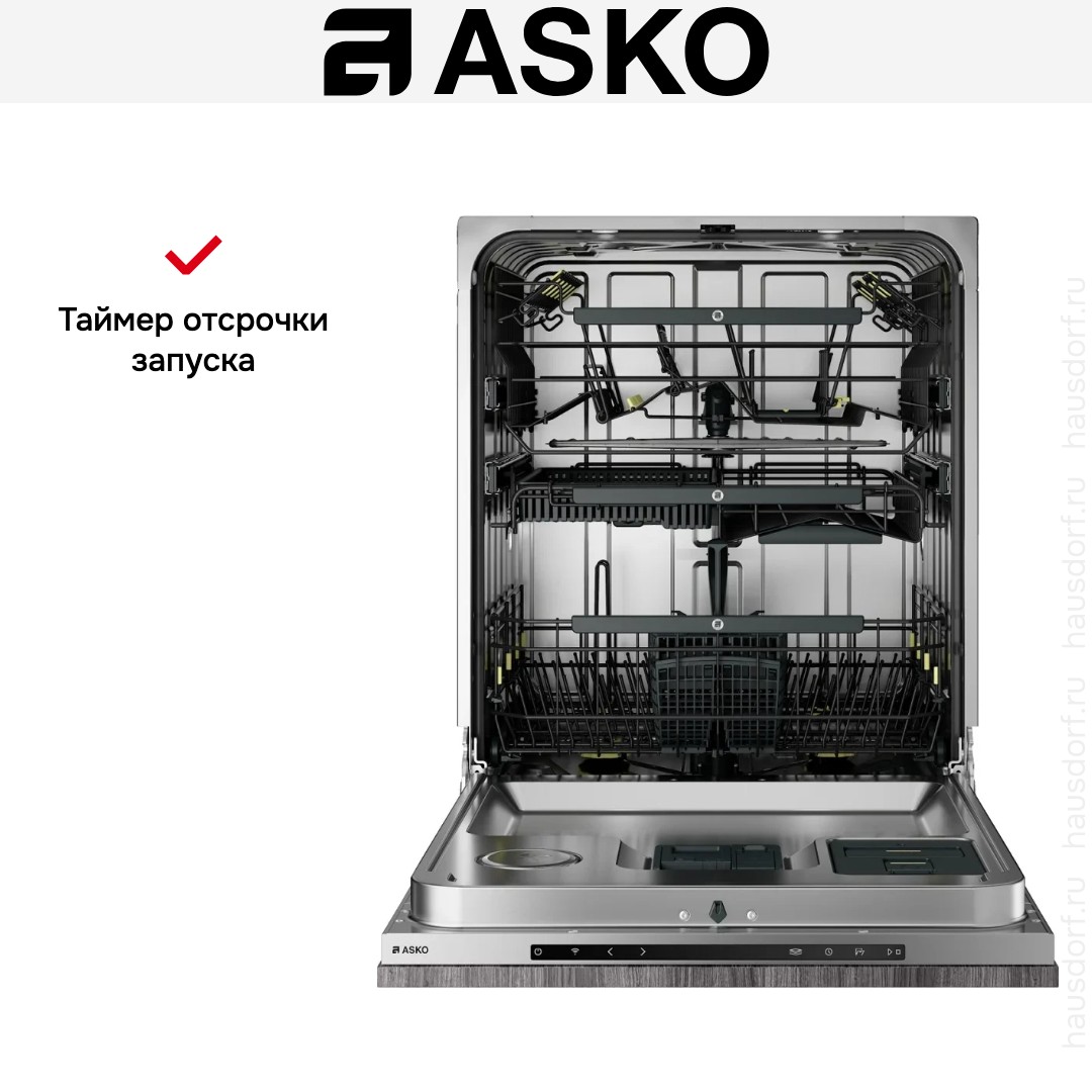Посудомоечная машина ASKO DFI748MU. Встраиваемое решение полностью скрытого типа объединяет строгую эстетику и техническую изящность, оставляя переднюю панель под ваш кухонный фасад. Панель управления из нержавеющей стали аккуратно закрыта, а цвет корпуса легко подстраивается под навесной фасад. Тонкий TFT‑дисплей с сенсорным управлением делает интерфейс понятным и аккуратным, а функция Push‑to‑Open и автоматическое приоткрывание дверцы по окончании цикла добавляют удобства при эксплуатации. Габариты и требуемая ниша указаны точно, что упрощает монтаж и интеграцию в стандартные кухонные модули.