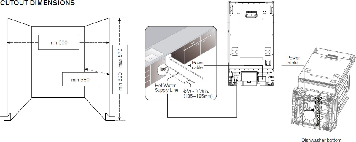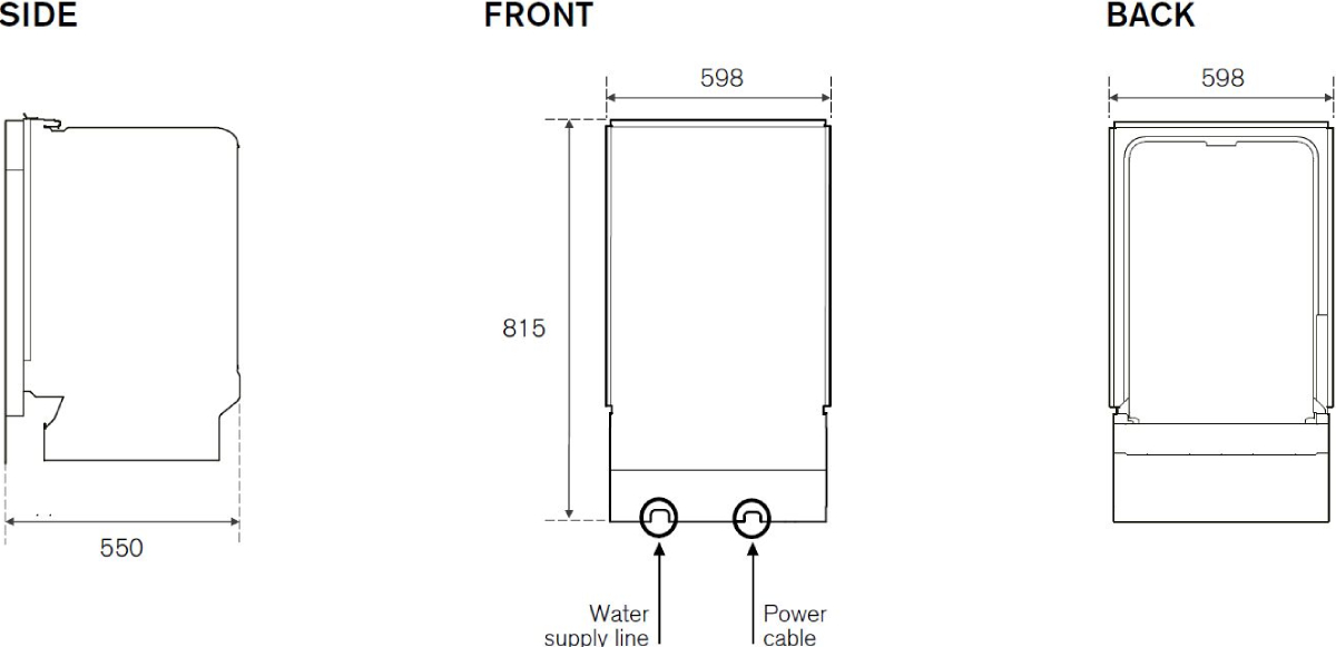 Большая часть полноразмерных и узких посудомоек встраиваемого и отдельностоящего вида имеет высоту около 82-85 см: такие модели легко размещаются под столешницей. Встраиваемые модели несколько ниже, так как у них отсутствует верхняя крышка.