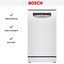 Посудомоечная машина Bosch SPS4EMW24E — это стильное и практичное решение для современной кухни, сочетающее в себе компактность, функциональность и надёжность. Благодаря узкому корпусу размером 84,5×45×60 см модель легко размещается даже в ограниченном пространстве, при этом вмещая до 10 комплектов посуды — идеальный объём для семьи из трёх-четырёх человек. Техника выполнена в белом цвете с контрастной чёрной панелью управления, что придаёт ей элегантный и современный вид. Внутренняя камера изготовлена из нержавеющей стали, что обеспечивает долговечность, устойчивость к коррозии и простоту в уходе. Устройство оснащено пятью стандартными программами и четырьмя температурными режимами, что позволяет подобрать оптимальный цикл для любого типа загрязнений — от лёгкой пены до засохших остатков пищи. Сушка осуществляется с помощью теплообменника, что гарантирует эффективное и бережное удаление влаги без резких перепадов температуры, защищая стекло и пластик от деформации. Электронное управление осуществляется через открытую панель с цифровым дисплеем, на котором отображаются ключевые параметры процесса. Функция отложенного старта на срок от 1 до 24 часов позволяет гибко планировать работу техники — например, запускать её ночью или в период действия минимальных тарифов. Низкий уровень шума, продуманная эргономика корзин и защита от протечек делают эксплуатацию максимально комфортной и безопасной. Энергоэффективность и разумный расход воды подчёркивают экологичность и экономичность модели из серии Serie | 4. Этот прибор станет надёжным помощником, избавив вас от рутинной ручной мойки и обеспечив безупречную чистоту после каждого цикла.