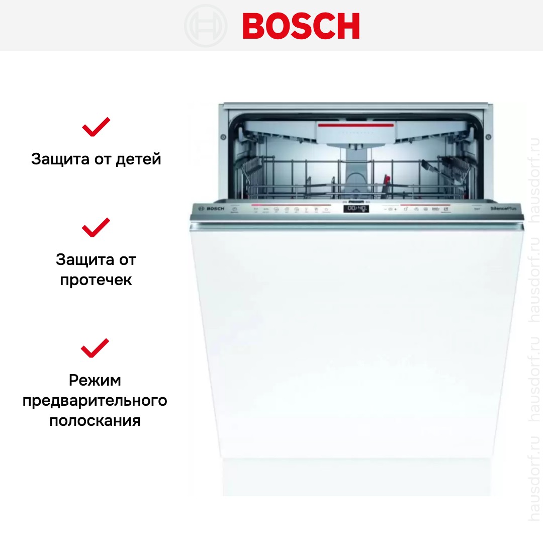Встраиваемая модель Бош отлично впишется в любой интерьер, главное — правильно выбрать место, чтобы подвести коммуникации. Устанавливается в нишу целиком, полностью закрывается декоративной панелью. Обратите внимание: в комплекте не идет фасад, его необходимо установить самостоятельно. Имеет стандартные размеры, поэтому может не поместиться на очень маленькой кухне. В камеру можно загрузить ограниченное число комплектов: 14 шт. Комплектом считается набор посуды на одного человека, который нужен для полноценного приема пищи: глубокая и плоская тарелки, тарелка для салата, блюдце под чашку, сама чашка, ложка и вилка.