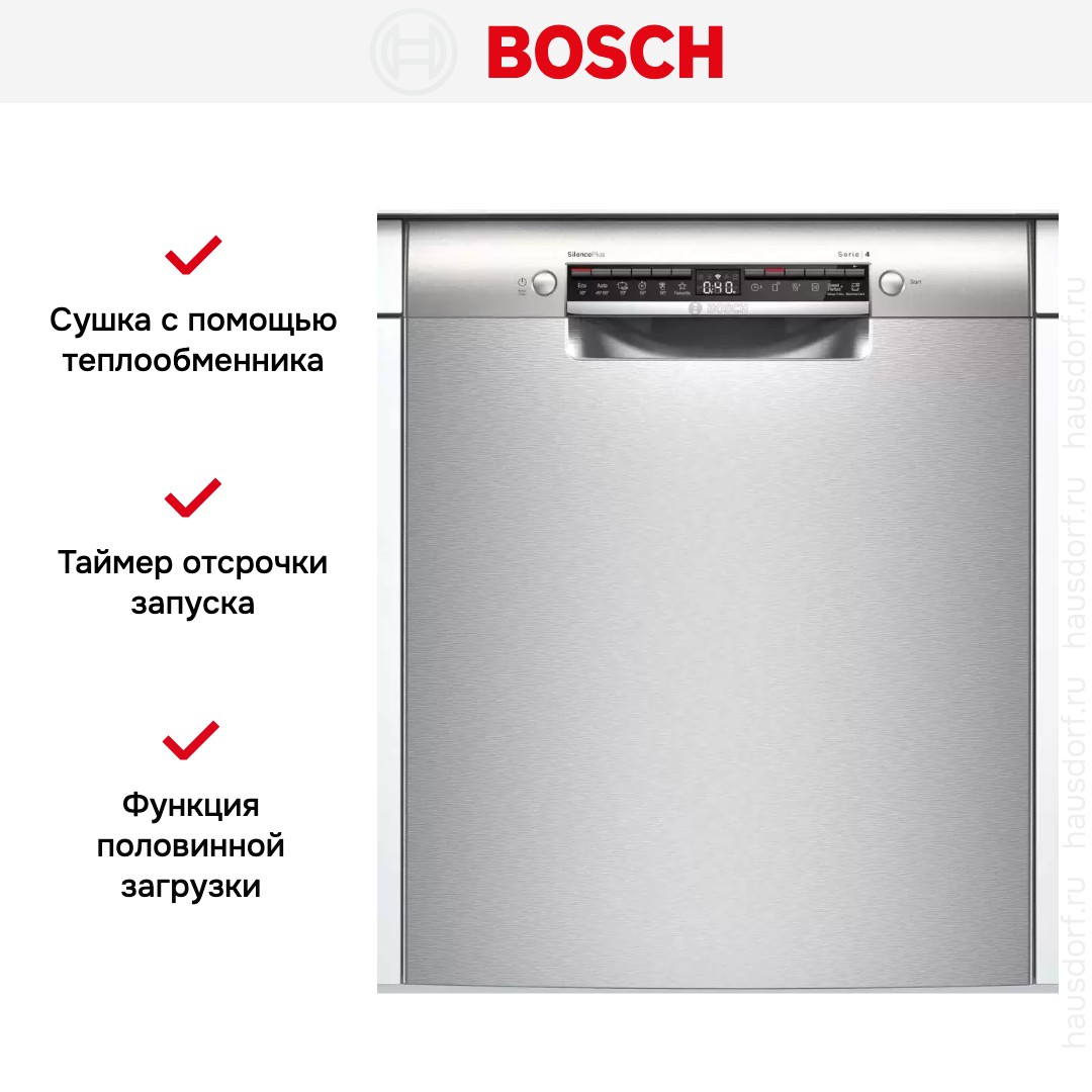 Встраиваемая посудомоечная машина Bosch SMU 4HAI48S — стильный встроенный прибор с открытой панелью для интеграции под мебель.
