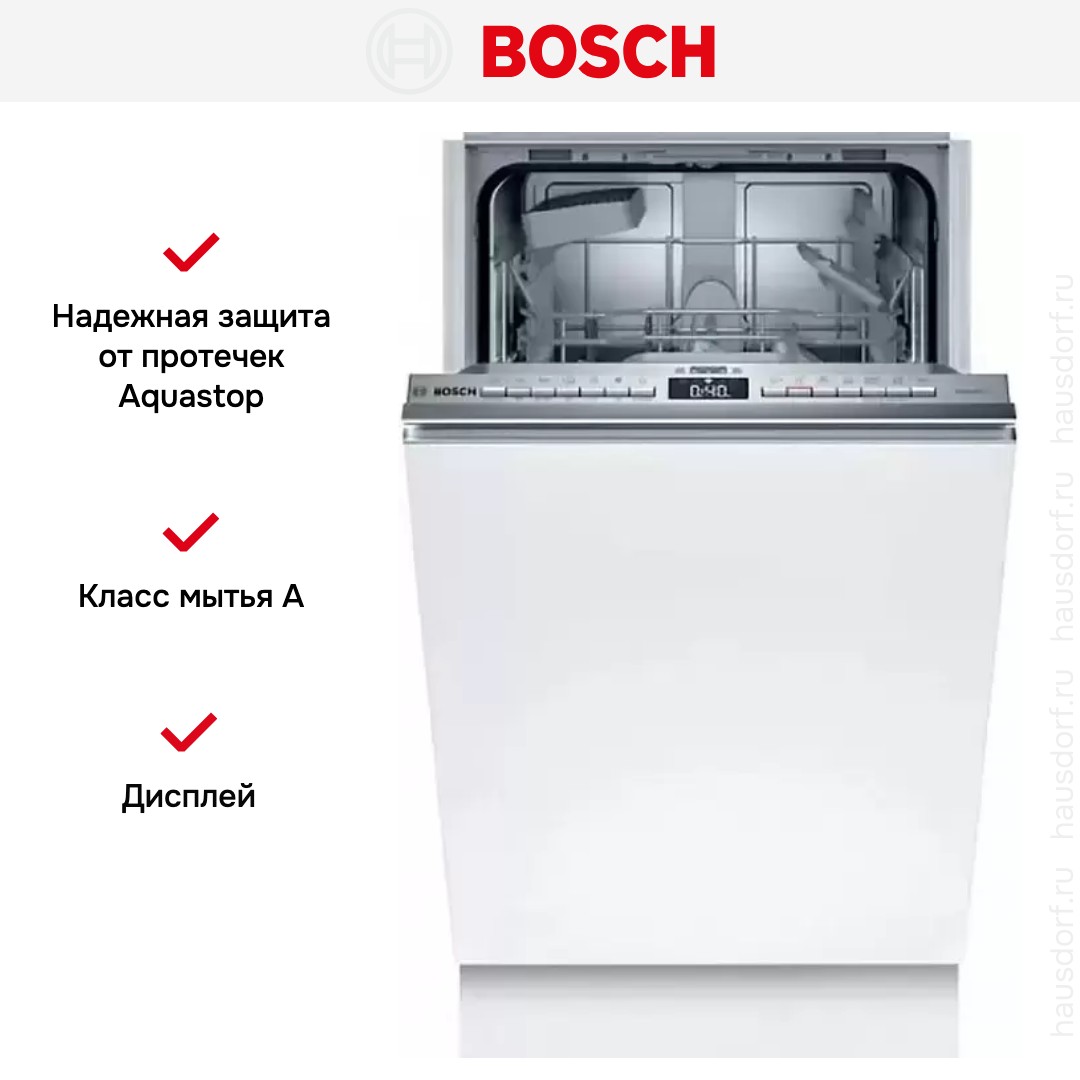 Посудомоечная машина Bosch SPV 4 EKX29E — узкая встраиваемая модель из серии Serie | 4, созданная для компактных кухонь и аккуратной интеграции под фасад. Ее полноинтегрируемый корпус позволяет скрыть технику за мебельной дверцей, а серый цвет панели управления гармонично смотрится с большинством интерьерных решений. Размеры 81.5×44.8×55 см и требуемая ниша 81.5—87.5×45×55 см делают её отличным выбором, когда место ограничено, но нужна полноценная функциональность.