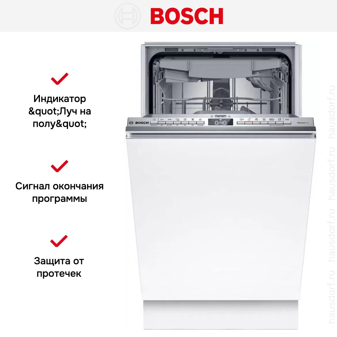Посудомоечная машина Bosch SPV4EMX10E — встраиваемая узкая модель для полной интеграции в кухню, которая сочетает лаконичный дизайн с продуманной эргономикой. Высота корпуса 81,5 см и стандартная глубина 55 см делают устройство удобным для монтажа под стандартный навесный фасад. Панель управления прячется за дверцей и выполнена из нержавеющей стали, поэтому на лицевой стороне сохраняется ровная поверхность, а информация выводится на цифровой дисплей и через «луч на полу». Цвет корпуса подбирается под ваш фасад, что позволяет сохранить стиль кухонного гарнитура без лишних компромиссов.