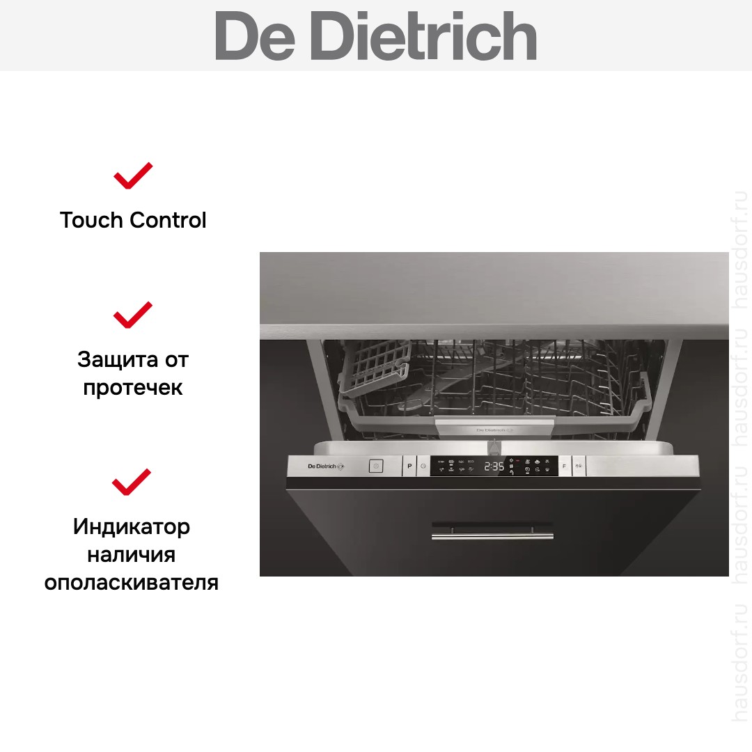 Встраиваемая посудомоечная машина De Dietrich DBJ422DQX — это элегантное и функциональное решение для современной кухни, сочетающее в себе безупречную интеграцию и высокую производительность. Полностью встраиваемая полноразмерная модель идеально скрывается за фасадом мебели, сохраняя целостность интерьера. Она вмещает 14 комплектов посуды, что делает её подходящей как для повседневного использования, так и для обслуживания гостей.