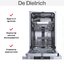 Встраиваемая модель Де Дитрих отлично впишется в любой интерьер, главное — правильно выбрать место, чтобы подвести коммуникации. Устанавливается в нишу целиком, полностью закрывается декоративной панелью. Обратите внимание: в комплекте не идет фасад, его необходимо установить самостоятельно. Имеет уменьшенную ширину — благодаря этому поместится даже на очень маленькой кухне. В камеру можно загрузить ограниченное число комплектов: 10 шт. Комплектом считается набор посуды на одного человека, который нужен для полноценного приема пищи: глубокая и плоская тарелки, тарелка для салата, блюдце под чашку, сама чашка, ложка и вилка.